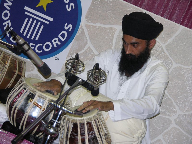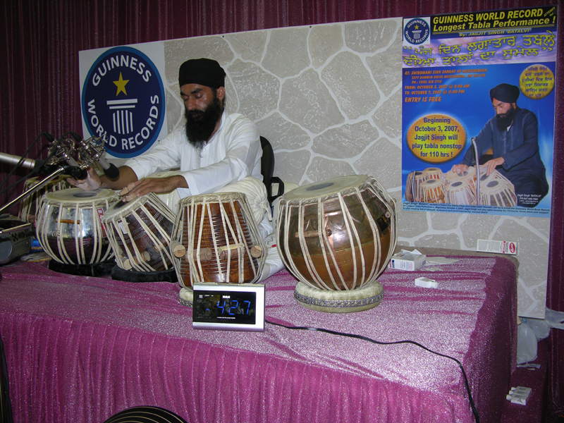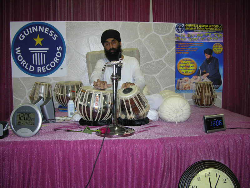Jagjit Singh 'Batalvi' was born and raised in Batala, a small city in Punjab, India, and was always a great music lover and passionate about playing Tabla (an instrument). He began learning Tabla from his cousin, Kamalpreet Singh when he was only four years of age. His love and passion for Tabla has brought him a long way from his childhood to present when he is fully ready to create a new Guinness World Record by playing his instrument non-stop for 110 hours - five days and four nights in a row. He completed his graduation (Grade 12), but kept his practice for Tabla along with his studies. His father, Taru Singh, was a doctor by profession but also a music lover and could also sing very well. He continued to learn Tabla from his cousin up to the age of nine and then continued his studies and completed his Bharat Vikas Parishad course in Punjab. After finishing his studies, he thought about meeting Ustad Alla Rakha Khan, a Bollywood legend and a well-known Tabla player in Bombay, so that he could learn directly from him. He wrote a letter to Ustad Alla Rakha Khan showing his interest and obsession about learning Tabla. Ustad ji wrote back saying he would like to see him perform first and then decide whether he is capable of learning from him or not. In 1993, he went to Bombay to perform the test of Ustad ji which he passed with outstanding marks and therefore decided to live there to give real life to his dreams of becoming a passionate Tabla player. During his stay in Bombay, he passed the audition for Television and Radio in 1995. In the same year he had an opportunity to play Tabla in a Television show. Now that he was under the guidance of Ustad Alla Rakha Khan, he felt even more motivated and inspired to become a great Tabla player. To achieve his goal, he decided to compete against other Tabla players from Punjab. All of his hard work and effort paid off when he received first prize in Punjab State competition. Then, he started getting lessons from another famous professional Ustad Zakir Hussain, son of Late Ustad Alla Rakha Khan. In 2000, he settled in Canada. While living in Canada, he decided to learn western music along with teaching eastern music to youngsters. In 2002, he had a chance to work in a T.V. commercial for an Airline. Until now, he has been fortunate enough to work with many different famous artists from all over India and Canada. Some of the stars are Ariane Muffatt, Richard Tremblay, Bruno Patiq, Ravi Joly, Uwe Newman, Bosky, Catherine Potter, Dolly Gularia (Daughter of Surinder Kaur), Rajkumar Rajivi, Hasu Patel, Padam Bhushan Sumitra Goha, Hardeep Bakhshi and many more. At the moment, he is currently living in Brampton, Ontario and has had the opportunity to travel many different countries such as England, Australia, all over North America and he looks forward to meeting people from all over the world.